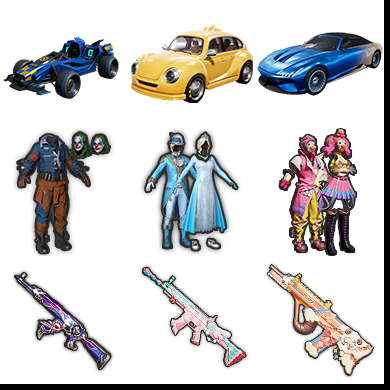 红装木乃伊️雪国幻梦️怪诞乔克️赤蝎幽灵️都市猎人️金鞋️巡查衣️萌神柯基️夏日倾情️12吧特效枪️6个载具