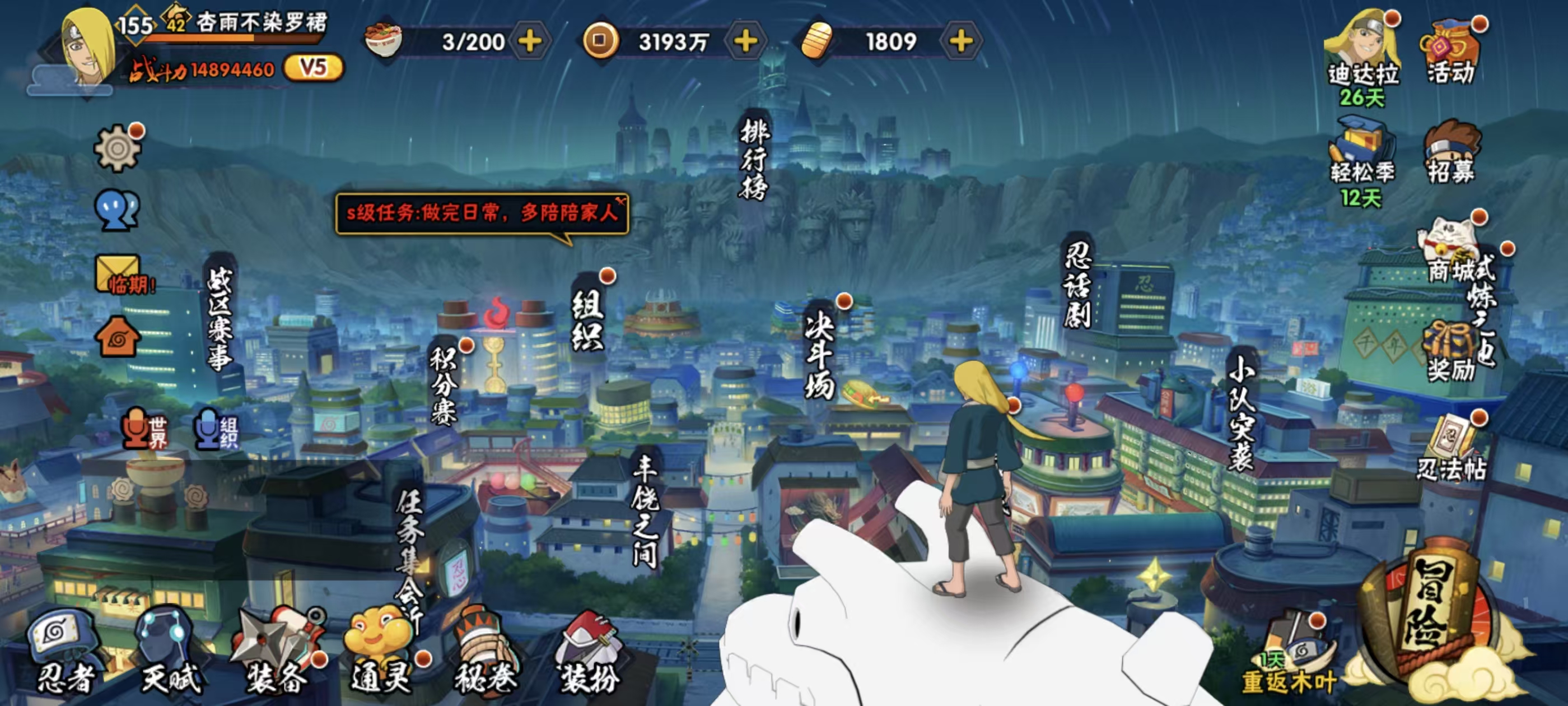 适配系统:安卓 账号类型(腾讯):QQ 战力值:1489W 分销起租时长:1 A忍者数量:54 S级忍者数:25