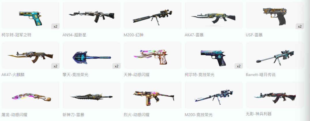 XX134@90V/可排位/M200-幻神-幻神音效卡/M200-竞技荣光套装/白虎/金色蔷薇/玫瑰精灵/USP-...