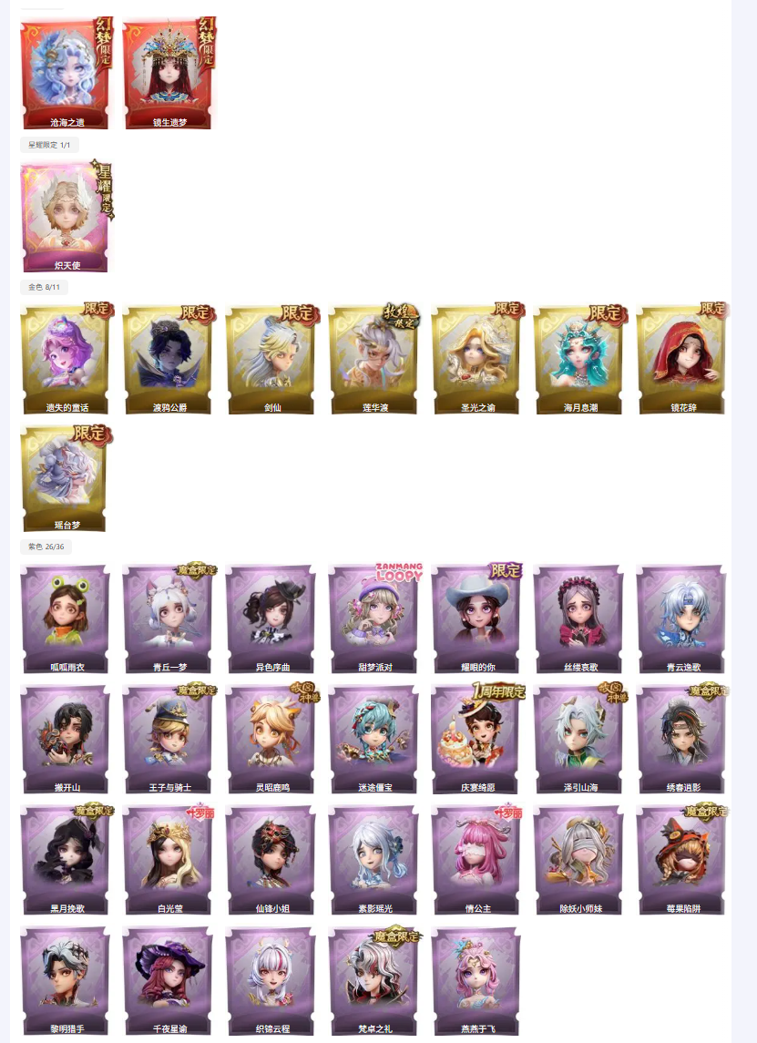 金色皮肤:8 紫色皮肤:33 是否有兔宝:否 道具皮肤:99