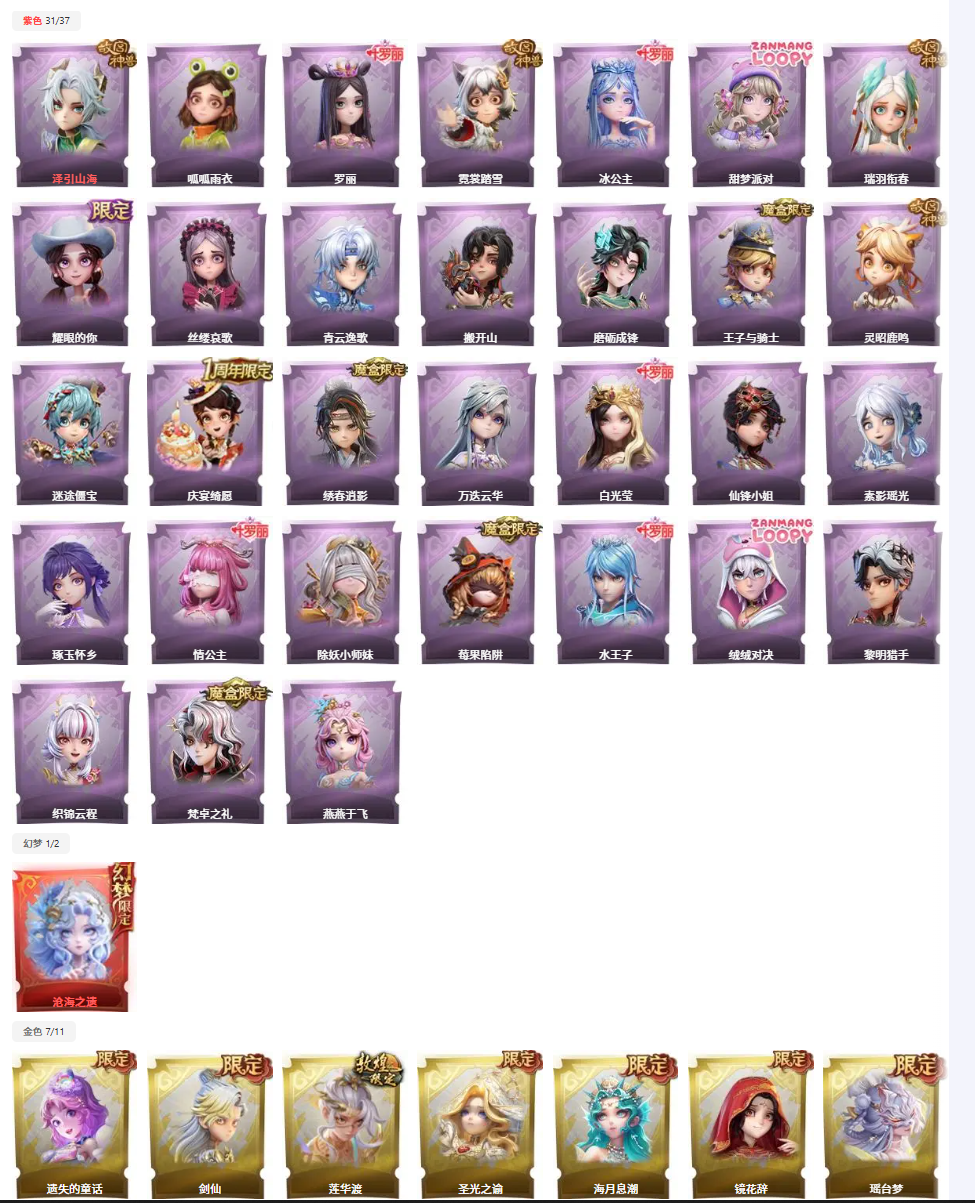 金色皮肤:7 紫色皮肤:31 是否有兔宝:否 道具皮肤:99