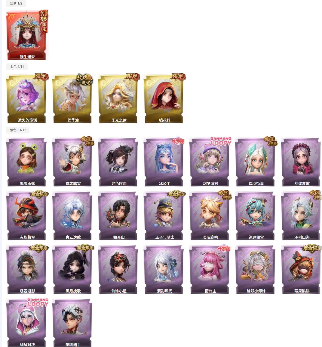 金色皮肤:4 紫色皮肤:23 是否有兔宝:否 道具皮肤:99
